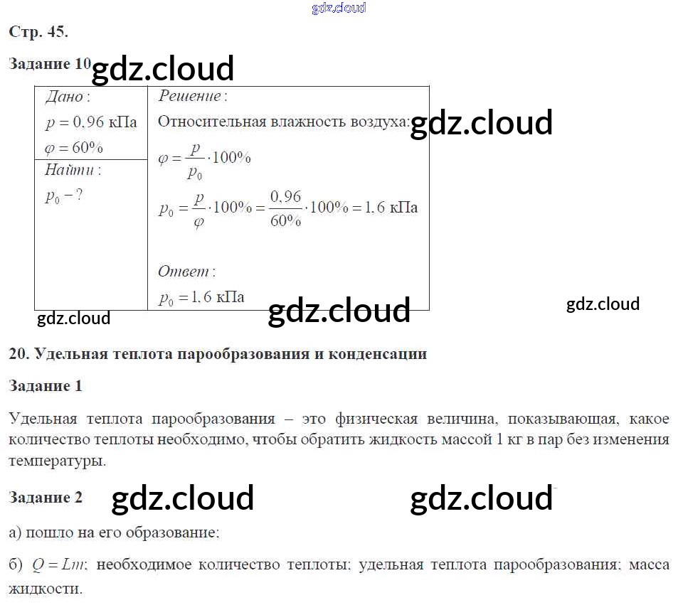 Ответ на задание 45 Рабочая тетрадь Физика за 8 (восьмой) класс Перышкин УМК 2017 ФГОС онлайн и без номера телефона.