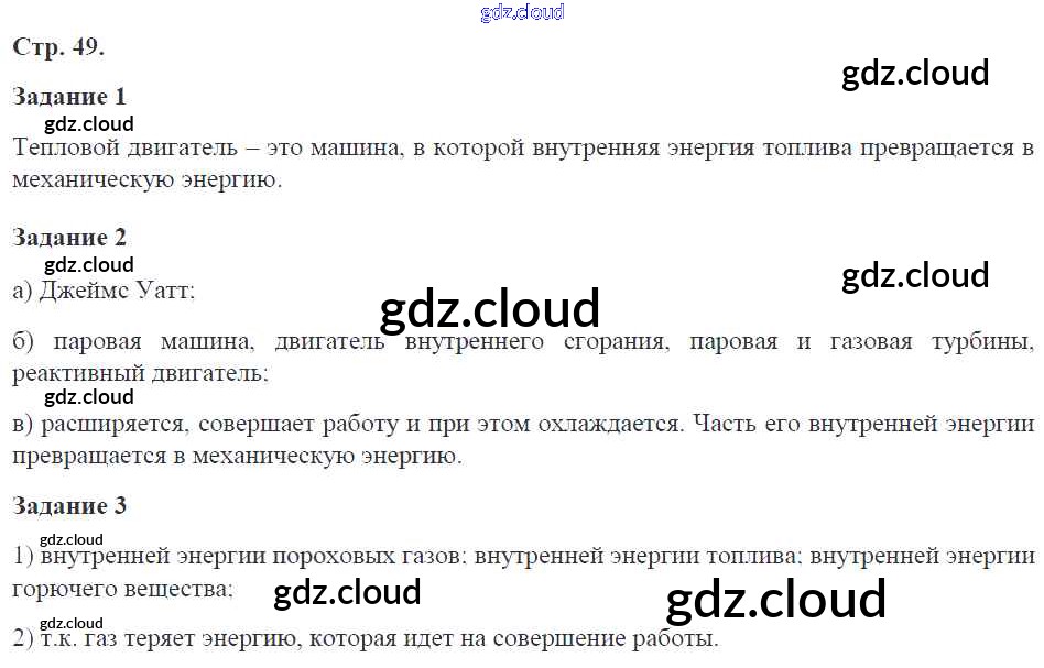 Ответ на задание 49 Рабочая тетрадь Физика за 8 (восьмой) класс Перышкин УМК 2017 ФГОС онлайн и без номера телефона.