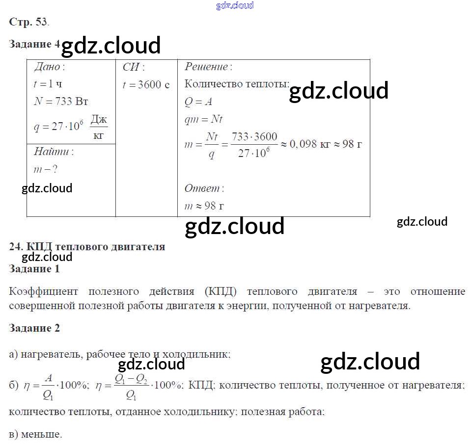 Ответ на задание 53 Рабочая тетрадь Физика за 8 (восьмой) класс Перышкин УМК 2017 ФГОС онлайн и без номера телефона.
