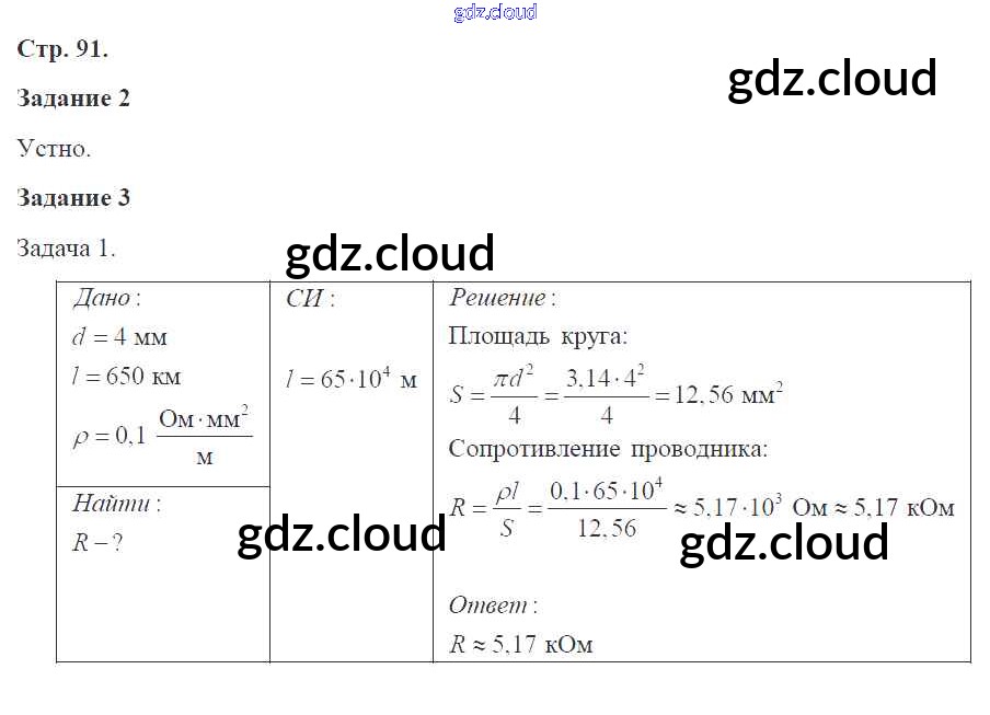 Ответ на задание 91 Рабочая тетрадь Физика за 8 (восьмой) класс Перышкин УМК 2017 ФГОС онлайн и без номера телефона.