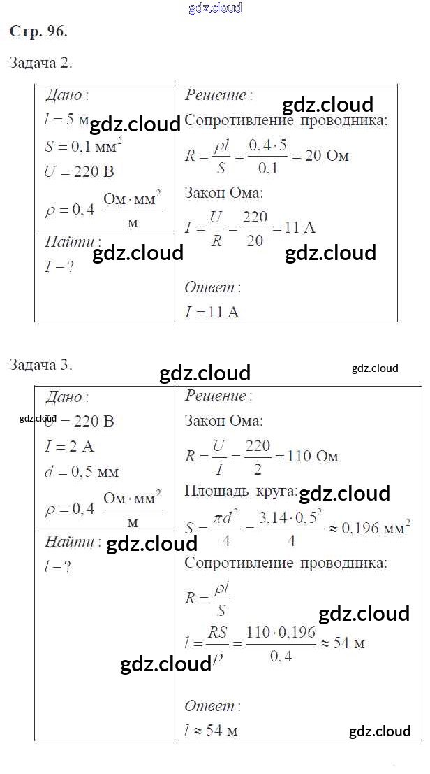 Ответ на задание 96 Рабочая тетрадь Физика за 8 (восьмой) класс Перышкин УМК 2017 ФГОС онлайн и без номера телефона.