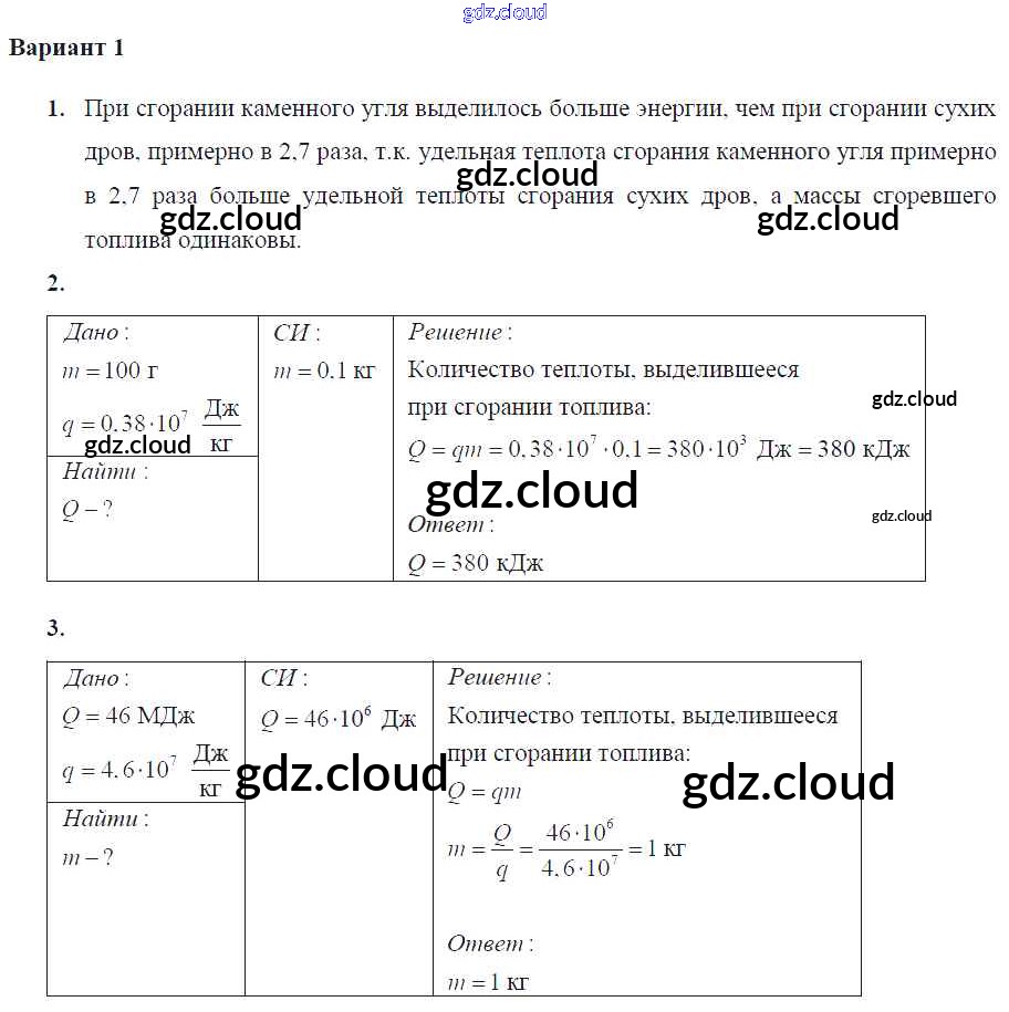 Ответ на задание Вариант-1 Самостоятельные и контрольные работы Физика за 8 (восьмой) класс Марон Вертикаль 2017