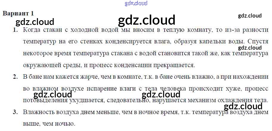 Ответ на задание Вариант-1 Самостоятельные и контрольные работы Физика за 8 (восьмой) класс Марон Вертикаль 2017