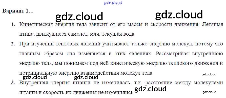 Ответ на задание Вариант-1 Самостоятельные и контрольные работы Физика за 8 (восьмой) класс Марон Вертикаль 2017