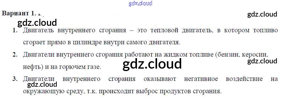 Ответ на задание Вариант-1 Самостоятельные и контрольные работы Физика за 8 (восьмой) класс Марон Вертикаль 2017