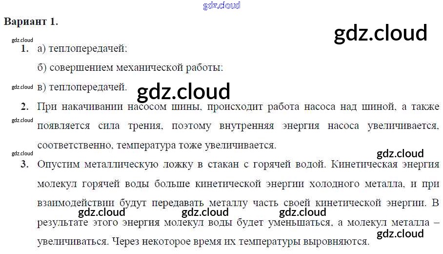 Ответ на задание Вариант-1 Самостоятельные и контрольные работы Физика за 8 (восьмой) класс Марон Вертикаль 2017