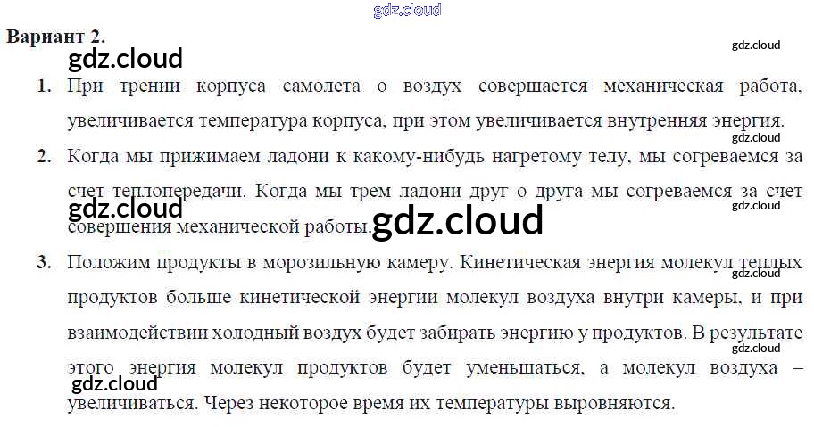 Ответ на задание Вариант-2 Самостоятельные и контрольные работы Физика за 8 (восьмой) класс Марон Вертикаль 2017