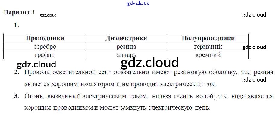 Ответ на задание Вариант-1 Самостоятельные и контрольные работы Физика за 8 (восьмой) класс Марон Вертикаль 2017