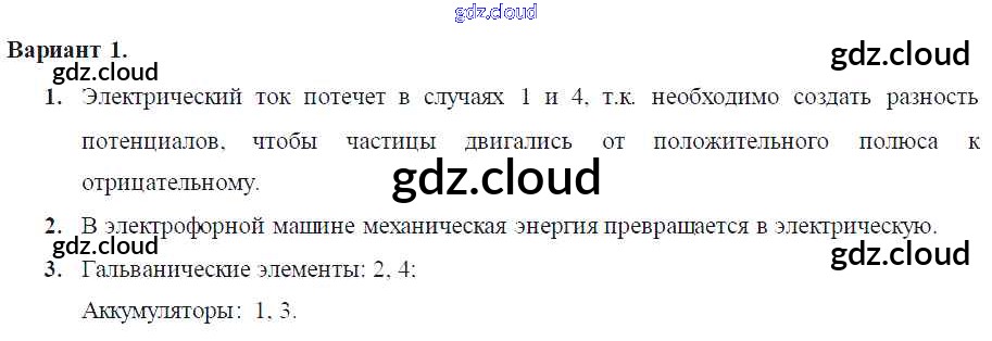Ответ на задание Вариант-1 Самостоятельные и контрольные работы Физика за 8 (восьмой) класс Марон Вертикаль 2017