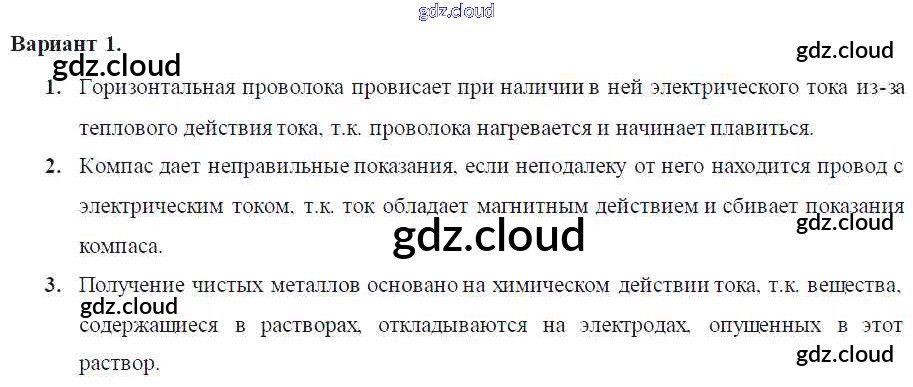 Ответ на задание Вариант-1 Самостоятельные и контрольные работы Физика за 8 (восьмой) класс Марон Вертикаль 2017