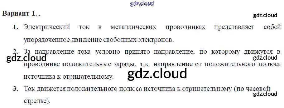 Ответ на задание Вариант-1 Самостоятельные и контрольные работы Физика за 8 (восьмой) класс Марон Вертикаль 2017