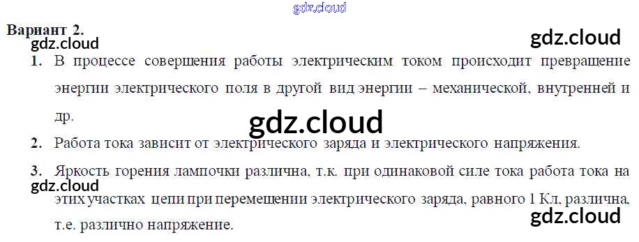 Ответ на задание Вариант-2 Самостоятельные и контрольные работы Физика за 8 (восьмой) класс Марон Вертикаль 2017