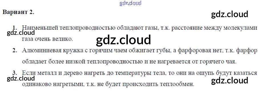 Ответ на задание Вариант-2 Самостоятельные и контрольные работы Физика за 8 (восьмой) класс Марон Вертикаль 2017
