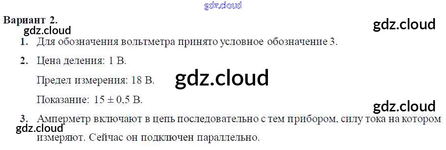 Ответ на задание Вариант-2 Самостоятельные и контрольные работы Физика за 8 (восьмой) класс Марон Вертикаль 2017