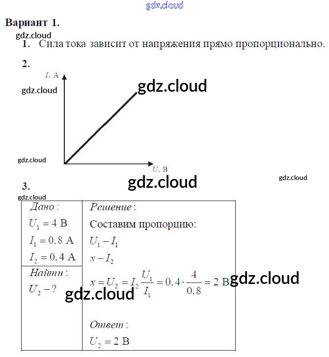 Ответ на задание Вариант-1 Самостоятельные и контрольные работы Физика за 8 (восьмой) класс Марон Вертикаль 2017