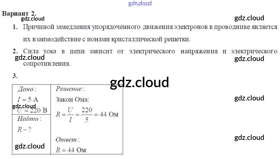 Ответ на задание Вариант-2 Самостоятельные и контрольные работы Физика за 8 (восьмой) класс Марон Вертикаль 2017