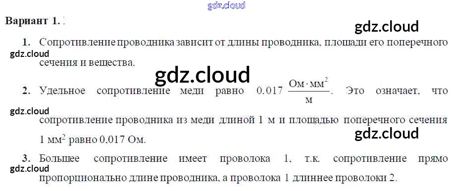 Ответ на задание Вариант-1 Самостоятельные и контрольные работы Физика за 8 (восьмой) класс Марон Вертикаль 2017