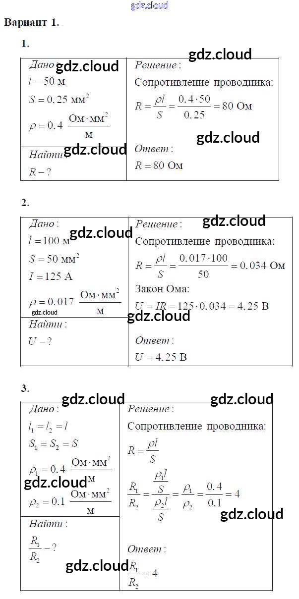 Ответ на задание Вариант-1 Самостоятельные и контрольные работы Физика за 8 (восьмой) класс Марон Вертикаль 2017