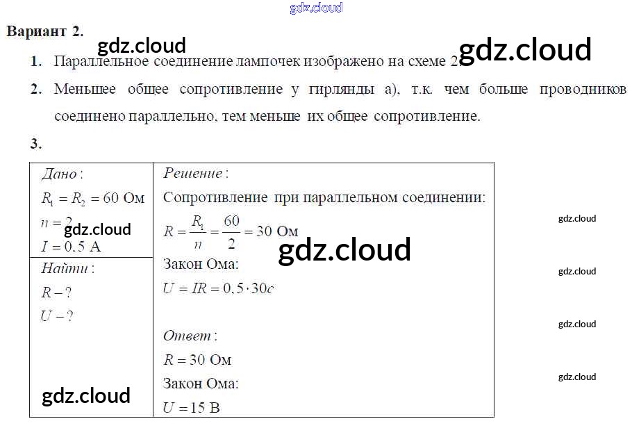 Ответ на задание Вариант-2 Самостоятельные и контрольные работы Физика за 8 (восьмой) класс Марон Вертикаль 2017