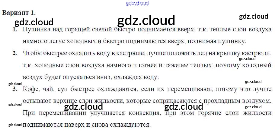 Ответ на задание Вариант-1 Самостоятельные и контрольные работы Физика за 8 (восьмой) класс Марон Вертикаль 2017