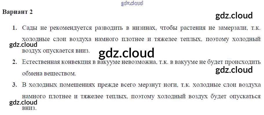Ответ на задание Вариант-2 Самостоятельные и контрольные работы Физика за 8 (восьмой) класс Марон Вертикаль 2017