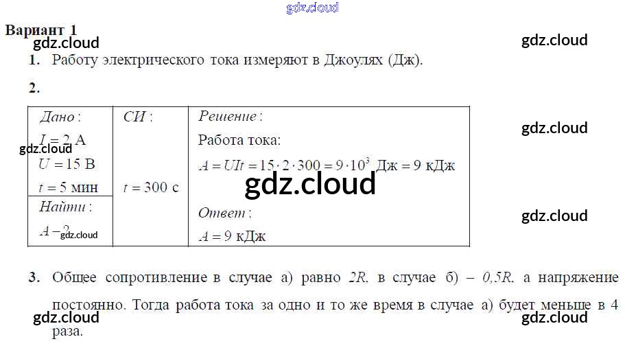 Ответ на задание Вариант-1 Самостоятельные и контрольные работы Физика за 8 (восьмой) класс Марон Вертикаль 2017