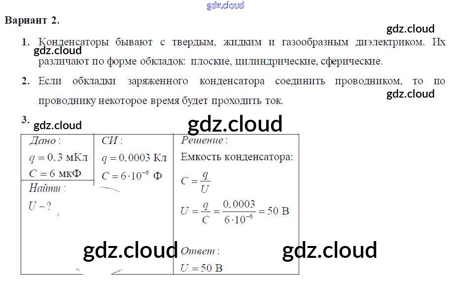 Ответ на задание Вариант-2 Самостоятельные и контрольные работы Физика за 8 (восьмой) класс Марон Вертикаль 2017