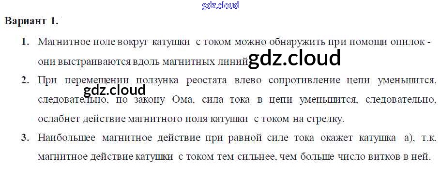 Ответ на задание Вариант-1 Самостоятельные и контрольные работы Физика за 8 (восьмой) класс Марон Вертикаль 2017