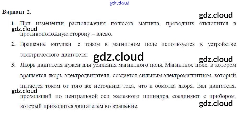 Ответ на задание Вариант-2 Самостоятельные и контрольные работы Физика за 8 (восьмой) класс Марон Вертикаль 2017