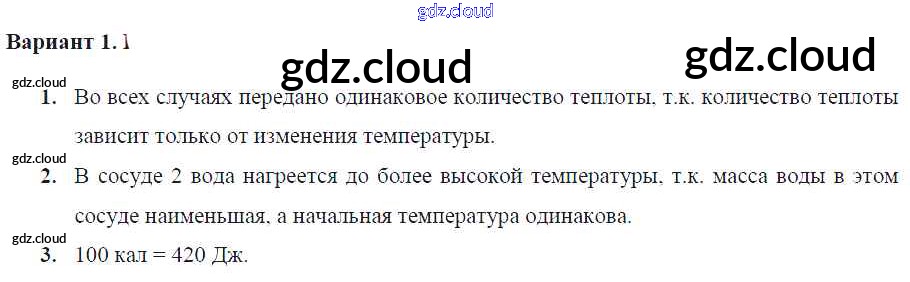 Ответ на задание Вариант-1 Самостоятельные и контрольные работы Физика за 8 (восьмой) класс Марон Вертикаль 2017