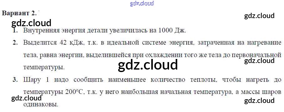 Ответ на задание Вариант-2 Самостоятельные и контрольные работы Физика за 8 (восьмой) класс Марон Вертикаль 2017
