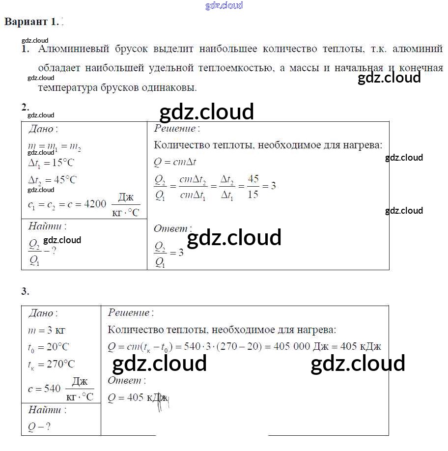 Ответ на задание Вариант-1 Самостоятельные и контрольные работы Физика за 8 (восьмой) класс Марон Вертикаль 2017
