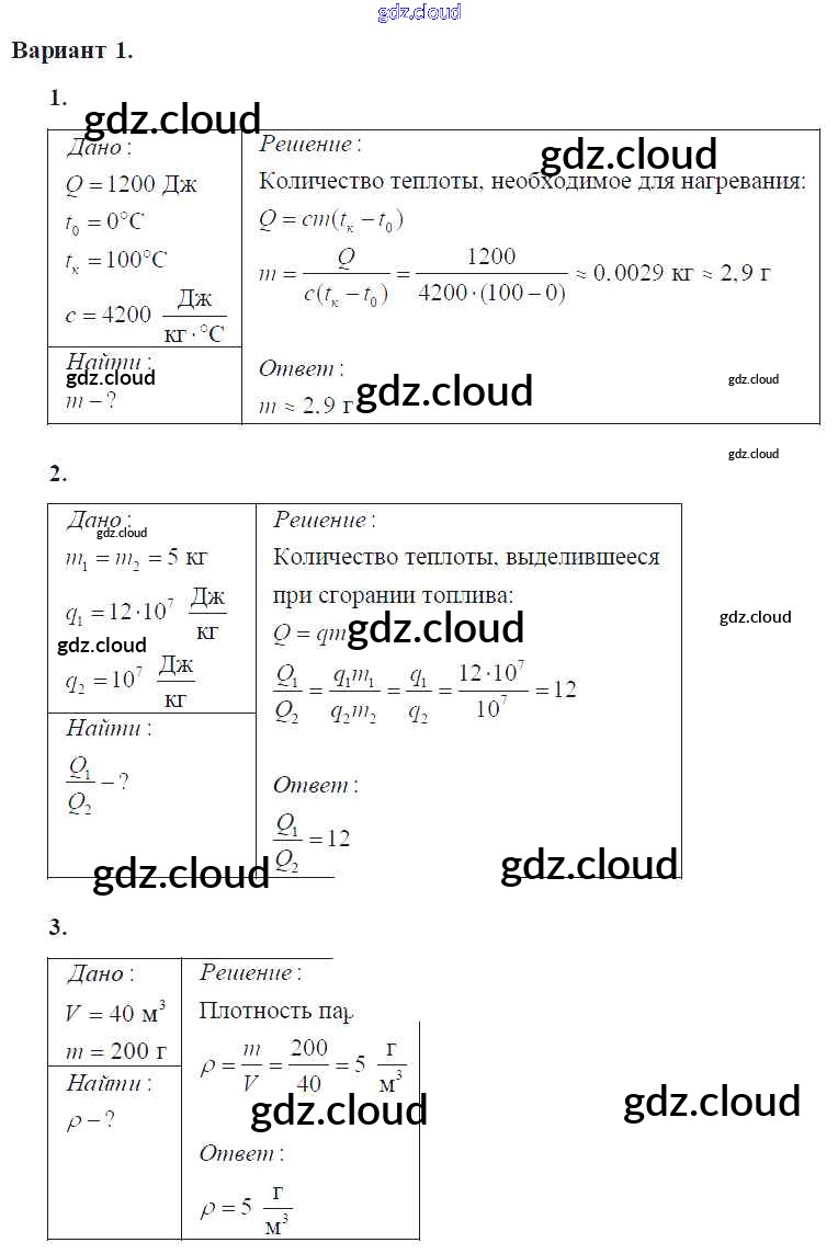 Ответ на задание Вариант-1 Самостоятельные и контрольные работы Физика за 8 (восьмой) класс Марон Вертикаль 2017