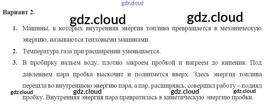 Ответ на задание Вариант-2 Самостоятельные и контрольные работы Физика за 8 (восьмой) класс Марон Вертикаль 2017