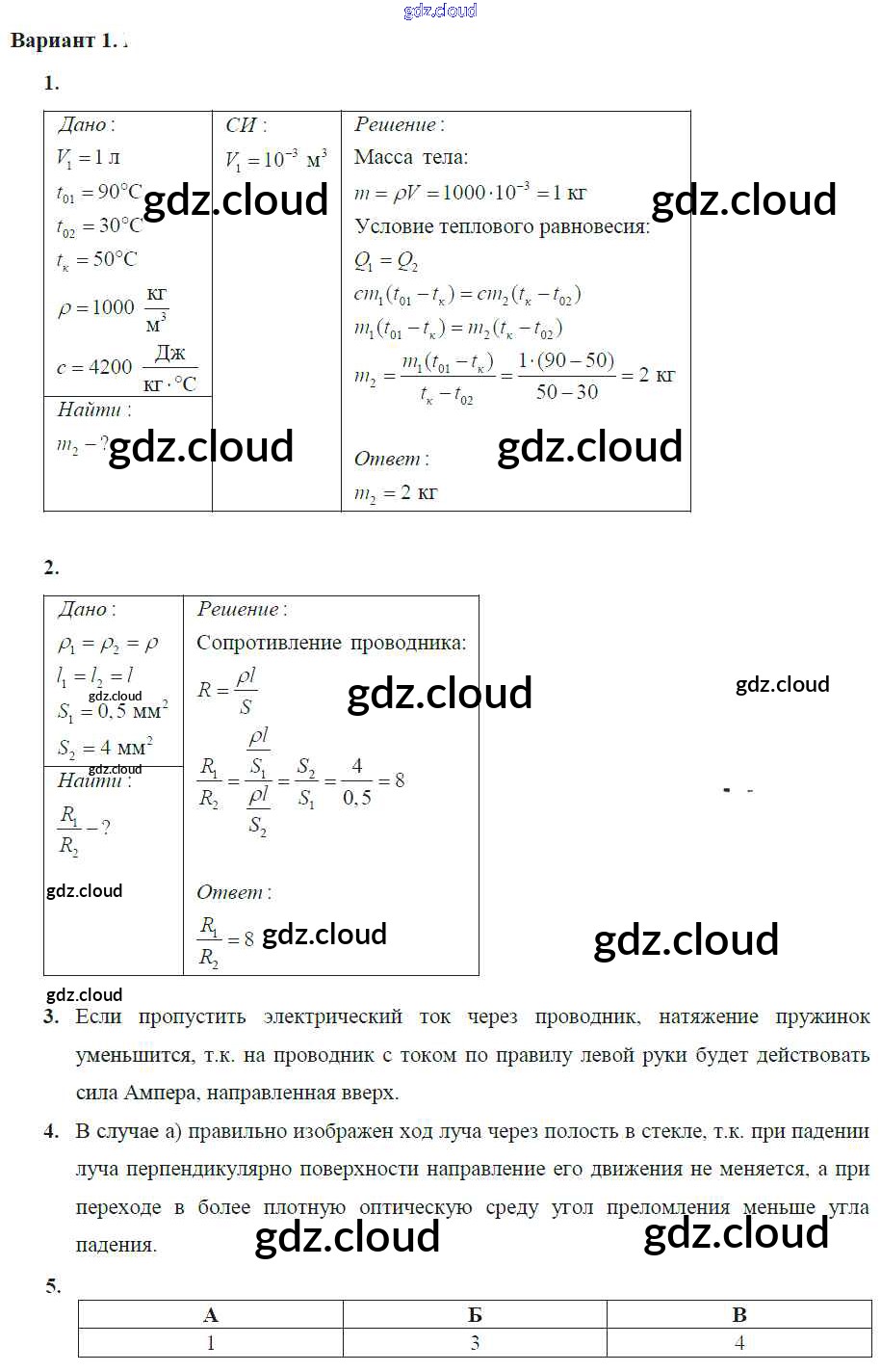 Ответ на задание Вариант-1 Самостоятельные и контрольные работы Физика за 8 (восьмой) класс Марон Вертикаль 2017