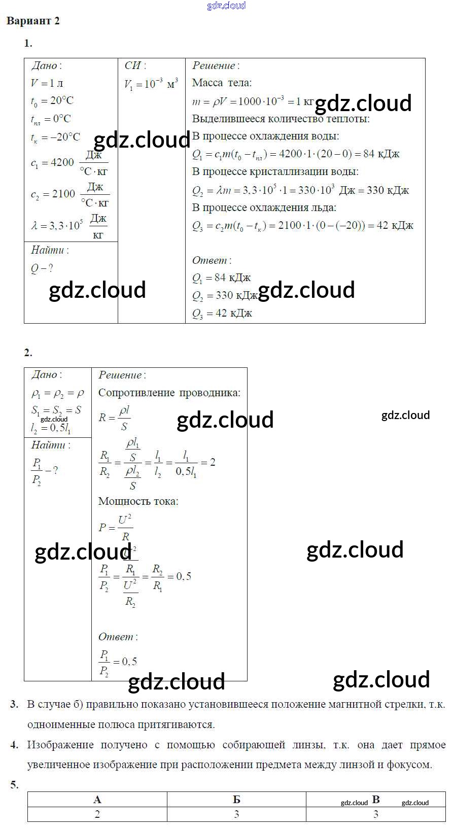 Ответ на задание Вариант-2 Самостоятельные и контрольные работы Физика за 8 (восьмой) класс Марон Вертикаль 2017