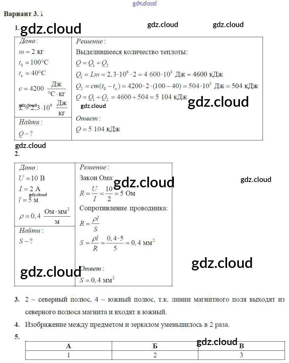 Ответ на задание Вариант-3 Самостоятельные и контрольные работы Физика за 8 (восьмой) класс Марон Вертикаль 2017