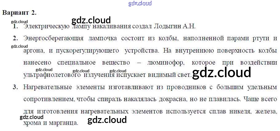 Ответ на задание Вариант-2 Самостоятельные и контрольные работы Физика за 8 (восьмой) класс Марон Вертикаль 2017