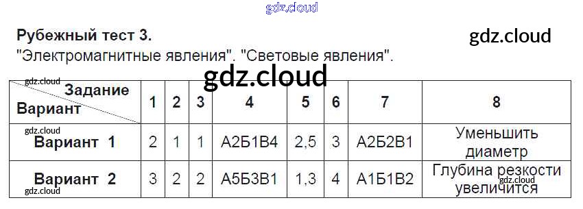 Ответы к рубежным тестам по Физике 8 класс Тесты Слепнева Вертикаль Дрофа