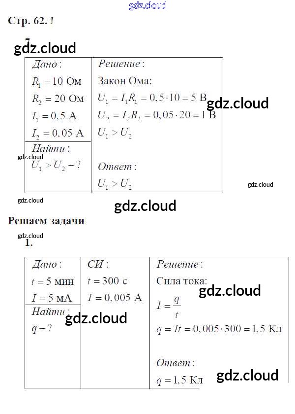 Ответ на задание 62 Тетрадь-тренажер Физика за 8 (восьмой) класс Артеменков, Белага, Воронцова Сферы 2012 ФГОС онлайн и без номера телефона.