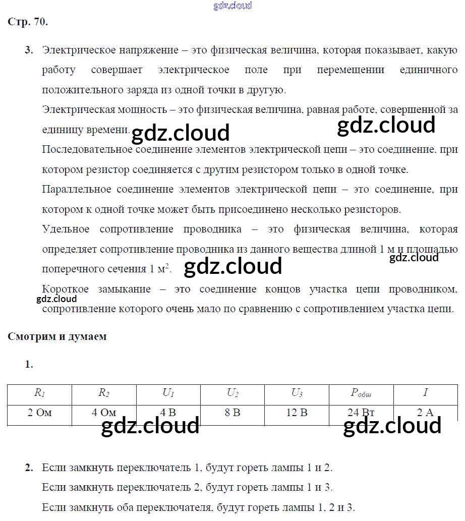Ответ на задание 70 Тетрадь-тренажер Физика за 8 (восьмой) класс Артеменков, Белага, Воронцова Сферы 2012 ФГОС онлайн и без номера телефона.