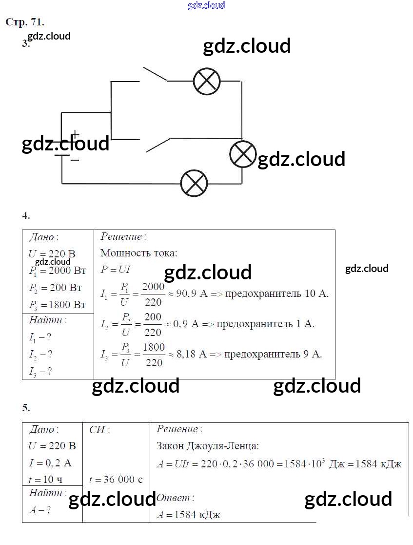 Ответ на задание 71 Тетрадь-тренажер Физика за 8 (восьмой) класс Артеменков, Белага, Воронцова Сферы 2012 ФГОС онлайн и без номера телефона.