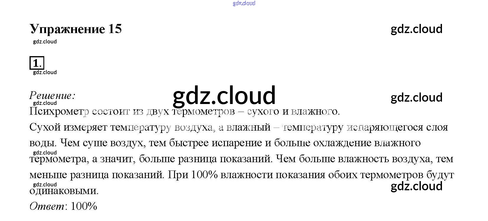 Ответ на задание 15 Учебник Физика за 8 (восьмой) класс Перышкин Вертикаль 2014