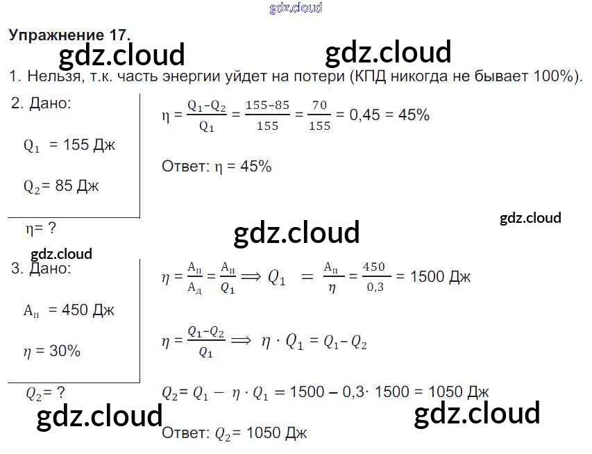 Ответ на задание 17 Учебник Физика за 8 (восьмой) класс Перышкин Вертикаль 2014