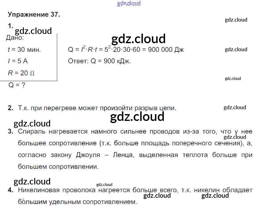 Ответ на задание 37 Учебник Физика за 8 (восьмой) класс Перышкин Вертикаль 2014
