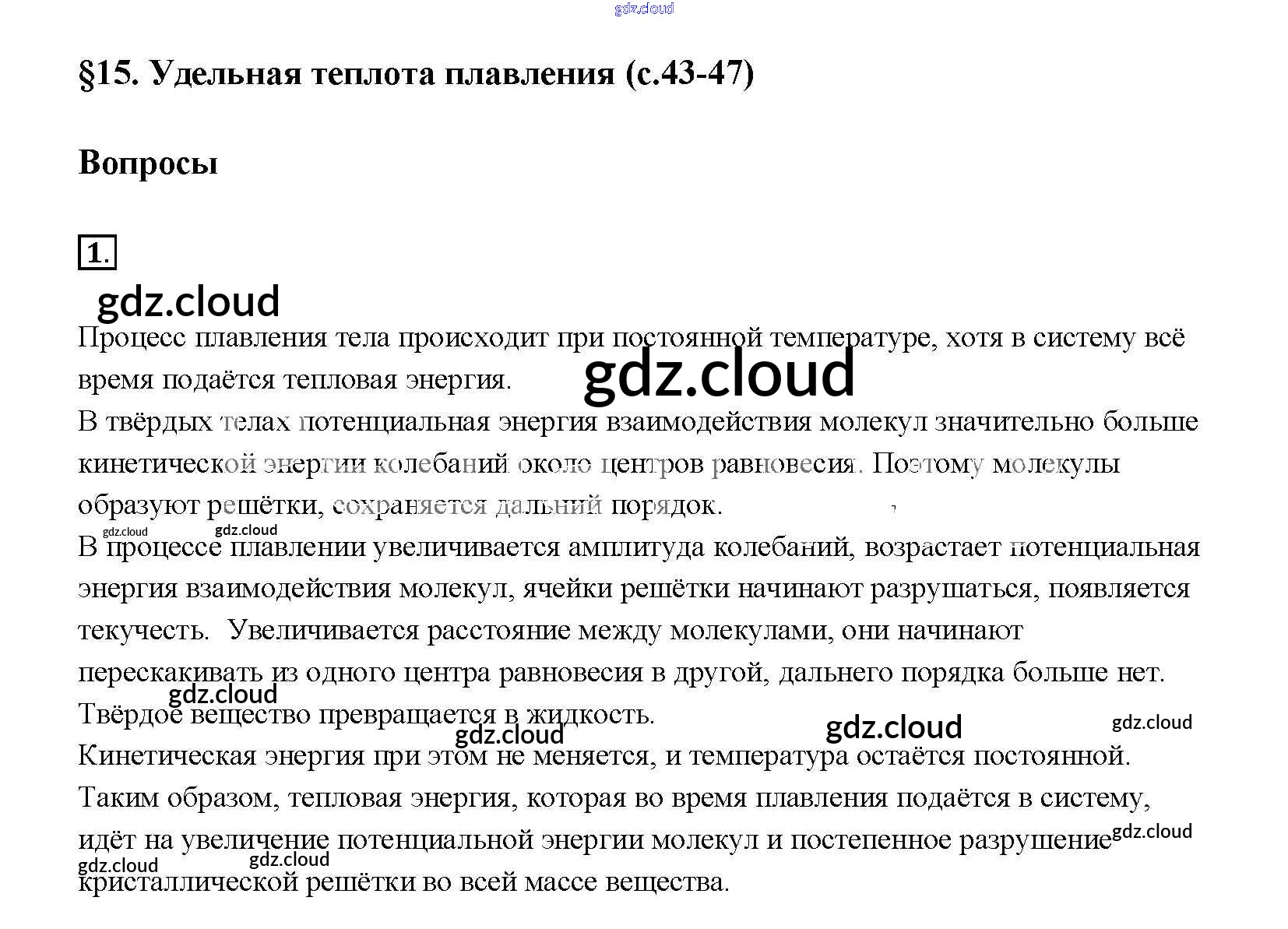 Ответ на задание § 15 Учебник Физика за 8 (восьмой) класс Перышкин Вертикаль 2014