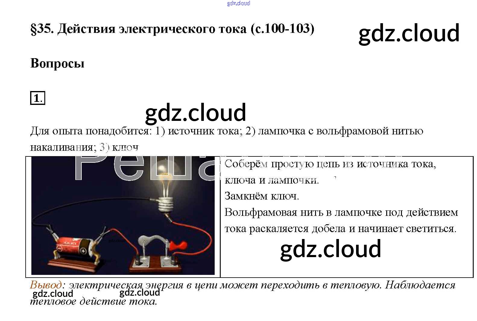 Ответ на задание § 35 Учебник Физика за 8 (восьмой) класс Перышкин Вертикаль 2014