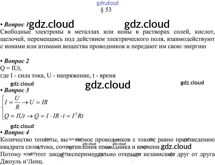 Ответ на задание § 53 Учебник Физика за 8 (восьмой) класс Перышкин Вертикаль 2014