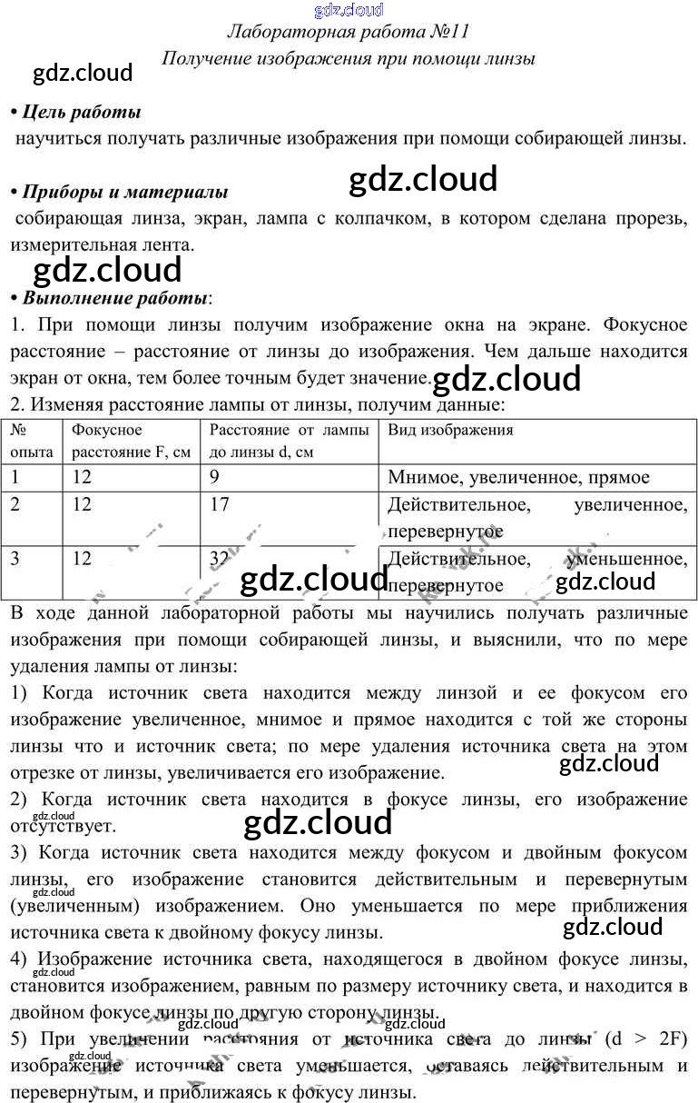 Ответ на задание ЛР-11 Учебник Физика за 8 (восьмой) класс Перышкин Вертикаль 2014