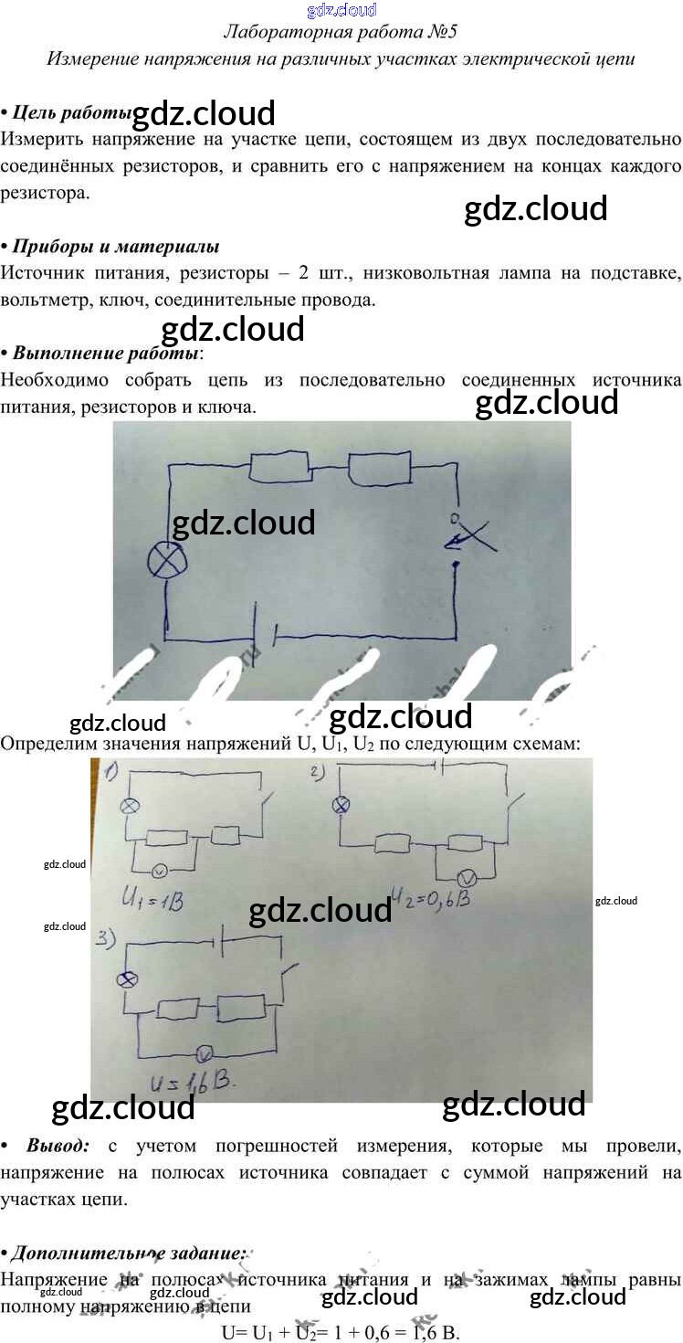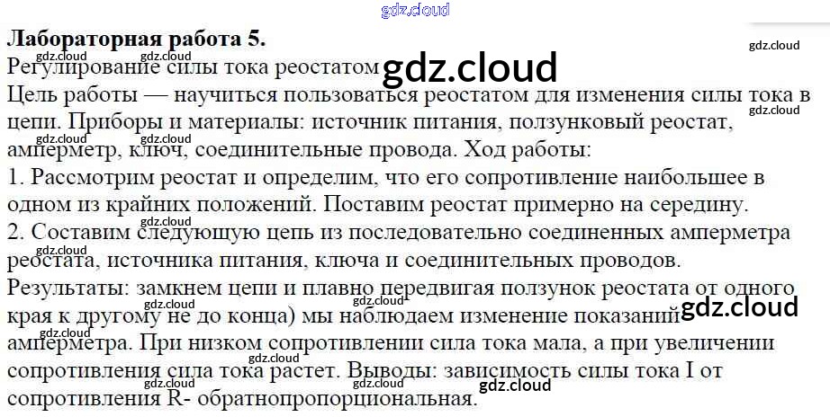 Ответ на задание ЛР-5 Учебник Физика за 8 (восьмой) класс Перышкин Вертикаль 2014